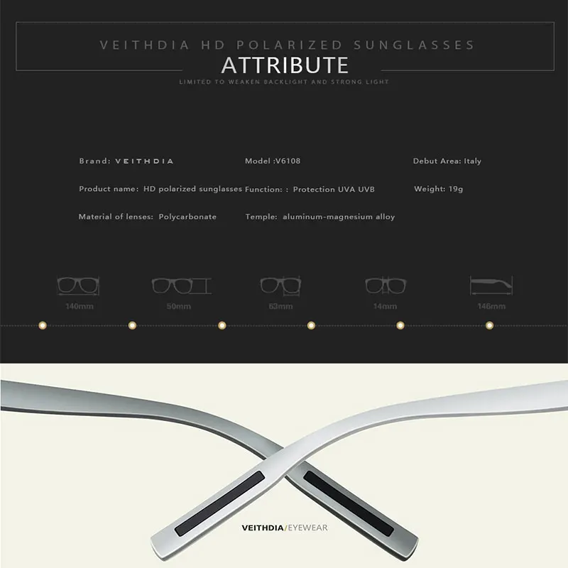 Мужские и женские солнцезащитные очки VEITHDIA, винтажные спортивные фотохромные поляризационные очки с линзами UV400, аксессуары для мужчин, V6108