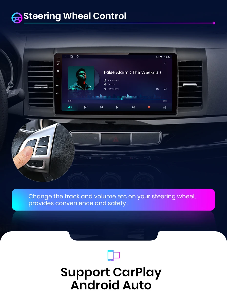 По факту андроид 8.1. Чуть-чуть пришлось подпилить средний фиксатор. Подошёл на Лансер 10 13г. Рестайлинг