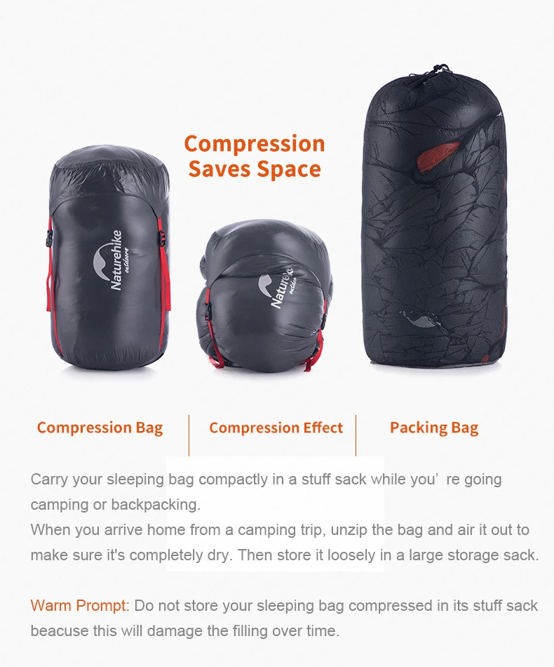 Спальный мешок NatureHike, теплый спальный мешок с капюшоном, гусиный пух, для холодной погоды, компрессионный материал, для отдыха на открытом воздухе, походов