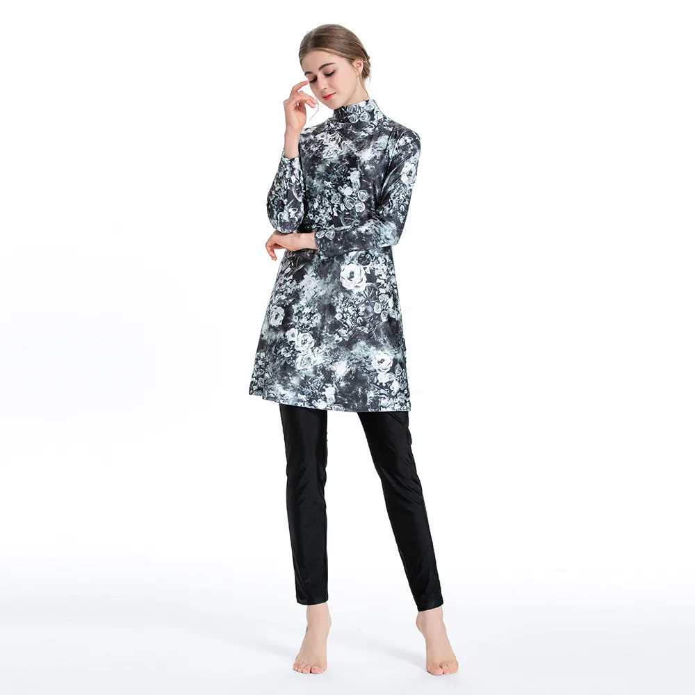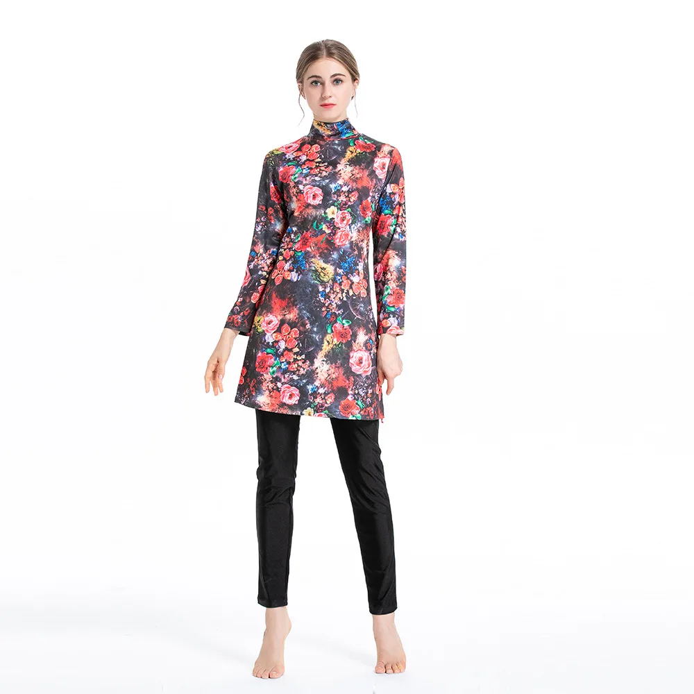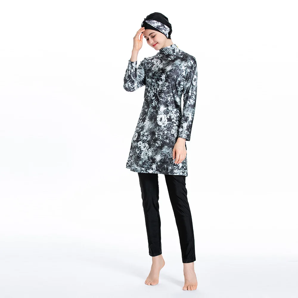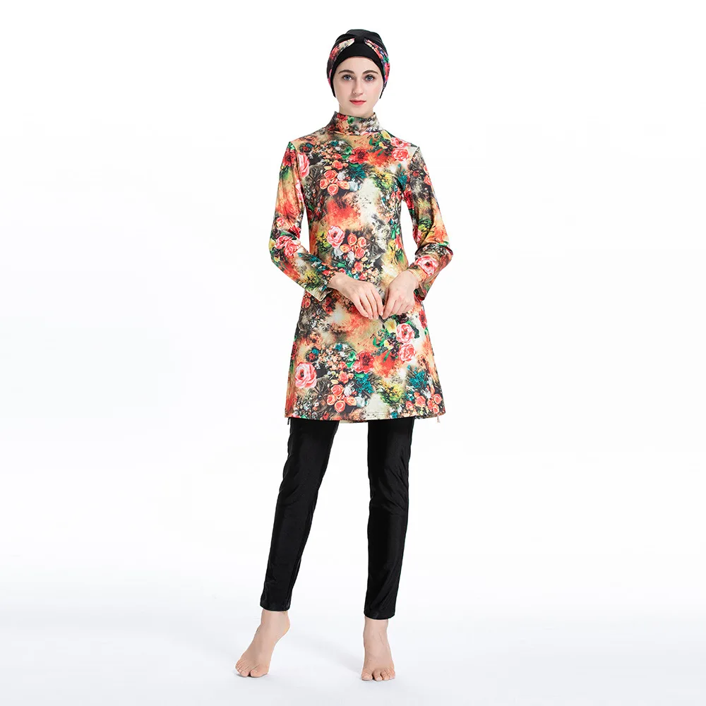 Новый мусульманский купальный костюм для женщин, мусульманская одежда для плавания с длинным рукавом, цветочный хиджаб с капюшоном, Арабский исламский купальник, одежда для серфинга, купание в буркине