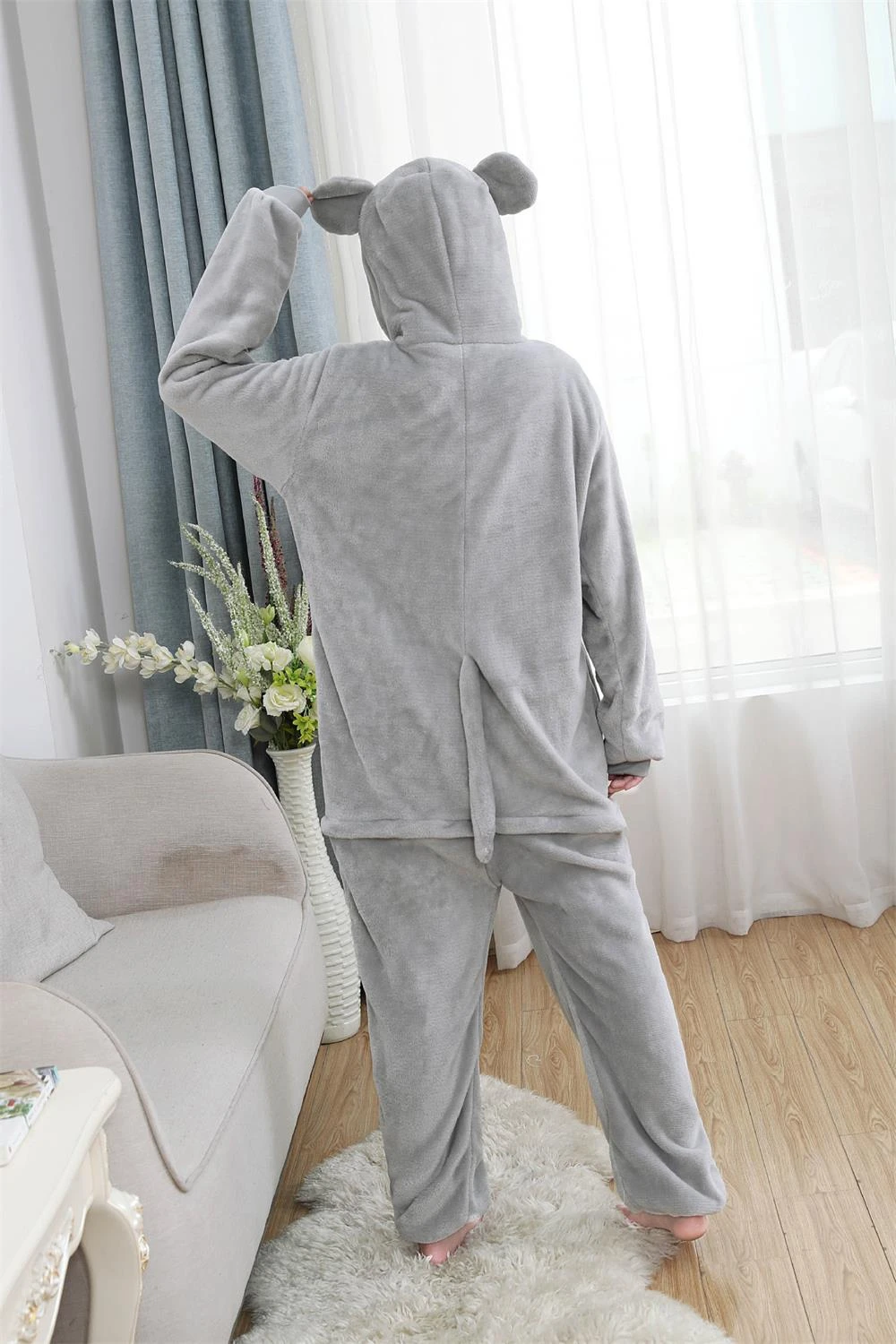 Фланелевый комбинезон-кигуруми в стиле унисекс, пижама в виде серой мыши для взрослых, ночная рубашка, костюм для косплея, пижама в виде животных, комплект одежды для сна