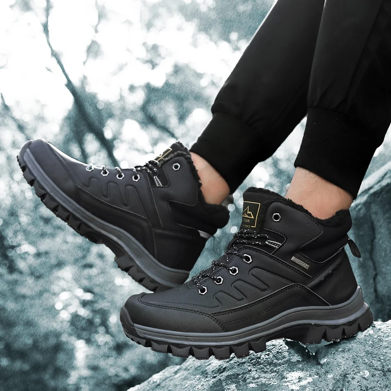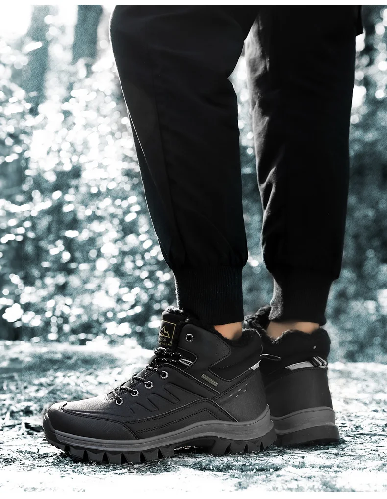 Мужские походные ботинки, зимние кожаные плюшевые высокие ботинки д...