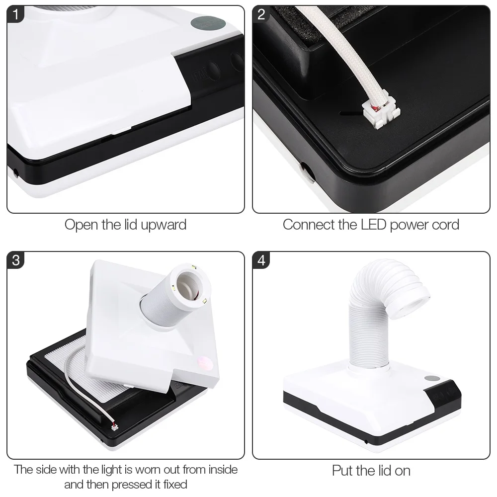 1. Сенсорный выключатель: сенсорный переключатель легче контролировать. 2. Использование труб в местах вблизи пыли для ногтей: Найдите направление распыления ногтей, используйте выравнивание труб, начните собирать пыль. 3. Светодиодный прожектор: три светодиодный прожектора встроены в передний конец катетера. Кроме сбора пыли, он также может использоваться в качестве освещения. 4. Уменьшить 96.41% PM2.5: уменьшить пыль ногтя на 96.41% и защитить здоровье мастера ногтя. 5. Простота обслуживания, Сменный фильтр: фильтр является заменяемым и техническое обслуживание очень удобно. 6. Срок службы двигателя составляет около 10000 часов, срок службы двигателя составляет около 10000 часов. Мастер может быть использован свободно. 7. Многоразовый фильтр: полый дизайн высокой эффективности рассеивания тепла. Многоразовый фильтр, используйте фен для выдувания, но не мойте его. Обычно используется с высокой частотой, можно использовать 3-4 месяца. 8,2 Режимы работы: можно использовать 2 режима, инновационная вакуумная конструкция всасывания делает шлифовку ногтей более удобной и повседневной.