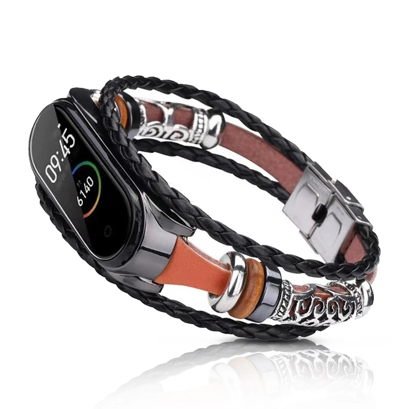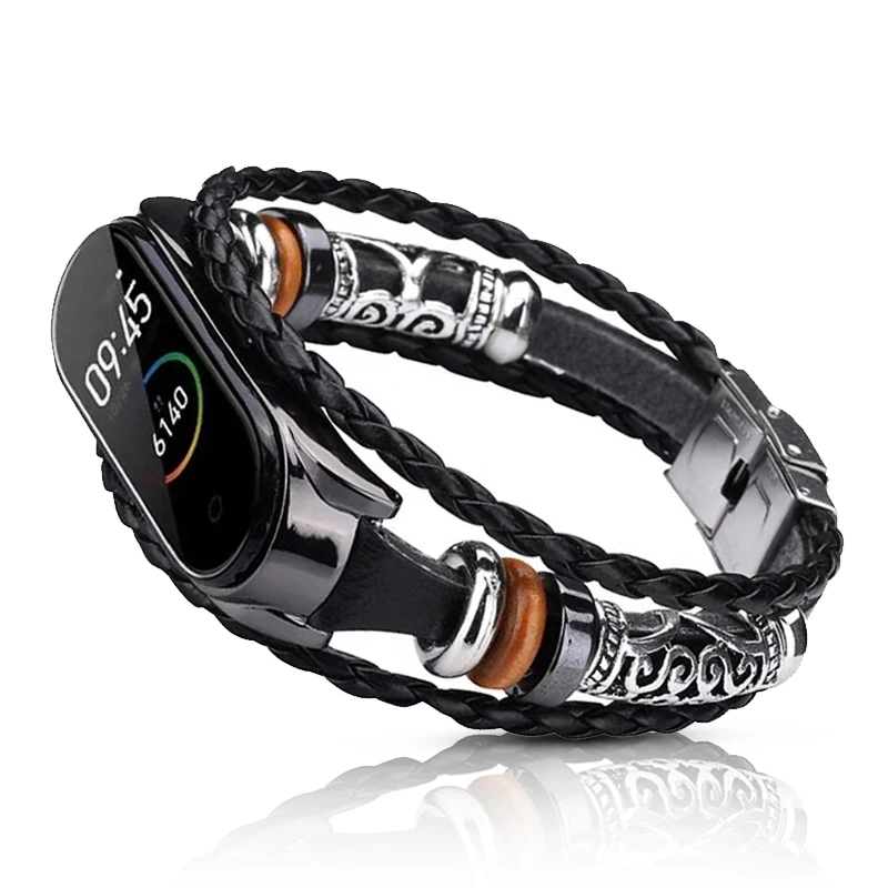 Браслет с бусинами для Xiaomi Mi Band 4 Кожаный Плетеный винтажный ...