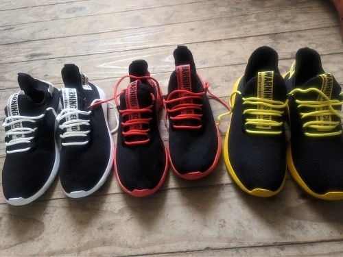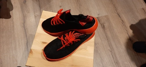 je pense qu'il y a un défaut d'emballage, le colis est arrivé complètement ouvert et c'était un cadeau pour mon conjoint....surprise ratée. la qualité est bonne, c'est conforme à la description et aux images. le guide des tailles en revanche n'est pas fiable, mon conjoint fait un 44 français donc vselon le tableau je devais prendre 46 mais c'est deux fois trop grand dommage ! je vais recommander un 44 j'espère que la taille sera adaptée. baskets légères et très confortables. bon rapport qualité-prix.