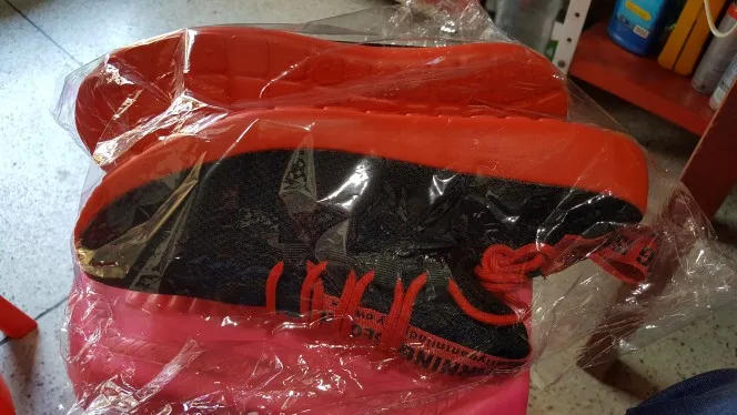 Доставка в Новосибирскую область - 23 дня. Неплохие легкие тапки. На стыках подошвы и сетки имеются следы клея. Не критично, но не очень аккуратно. В общем норм, описанию соответствуют.