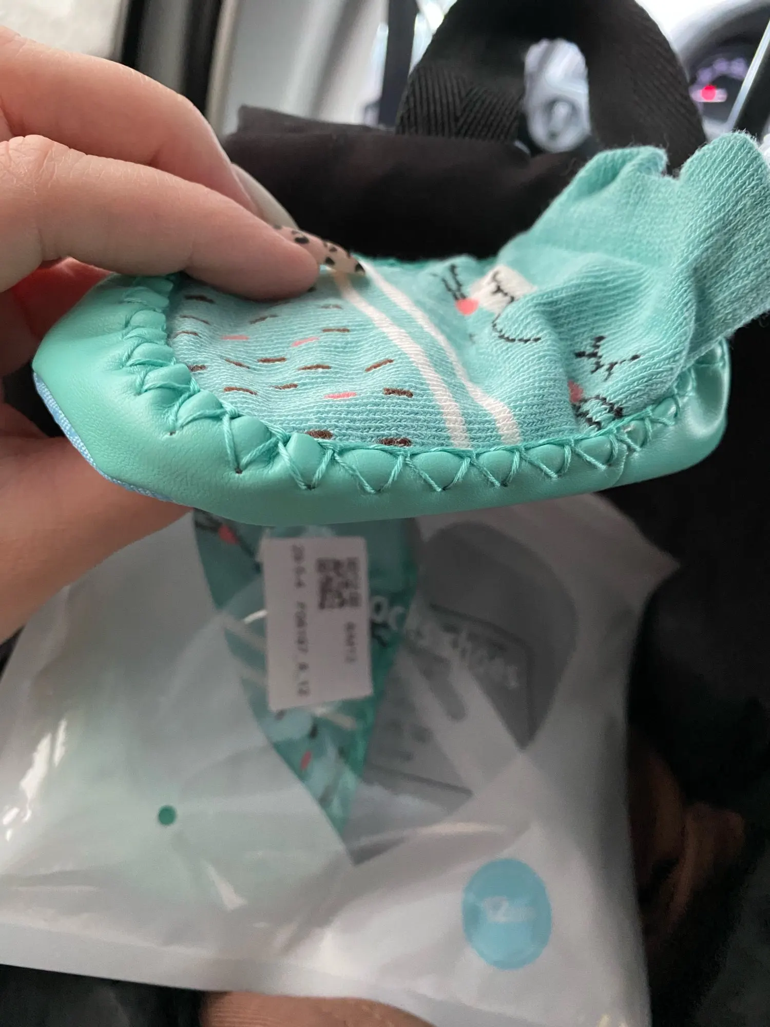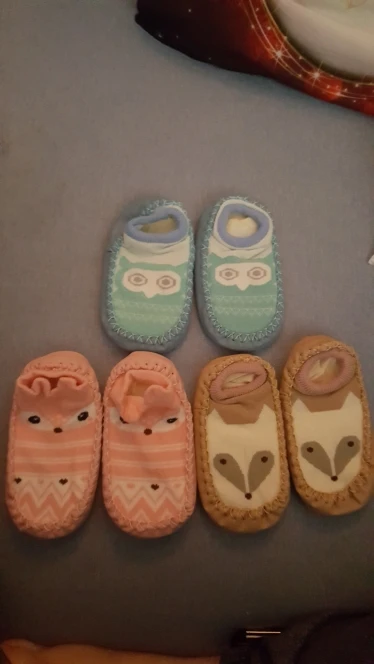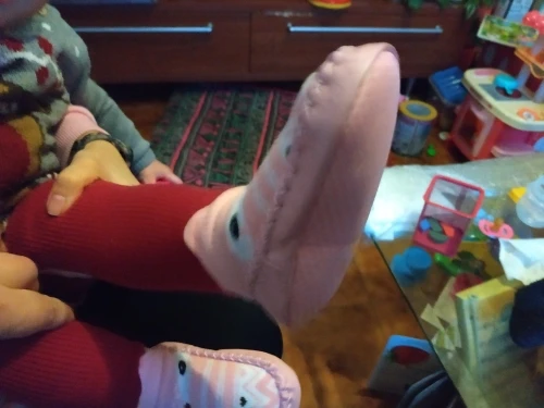 Хорошенькие домашние тапочки-носочки) Взяла своей дочке размер 24 мес, нам 2 года и 3 мес. Они как раз, еще на носочек надеваем. Не скользят, мягкие и удобные. Доставка в Украину укрпочтой 23 дня.