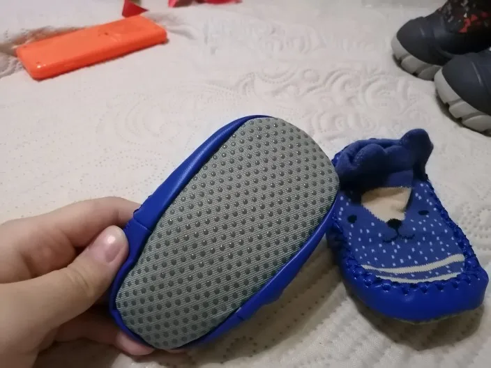 Отличные тапочки. все как на фото. заказывали на 12 месяцев- пришли 13 см.доставка быстрая- 2 недели до Украины (Одесса)