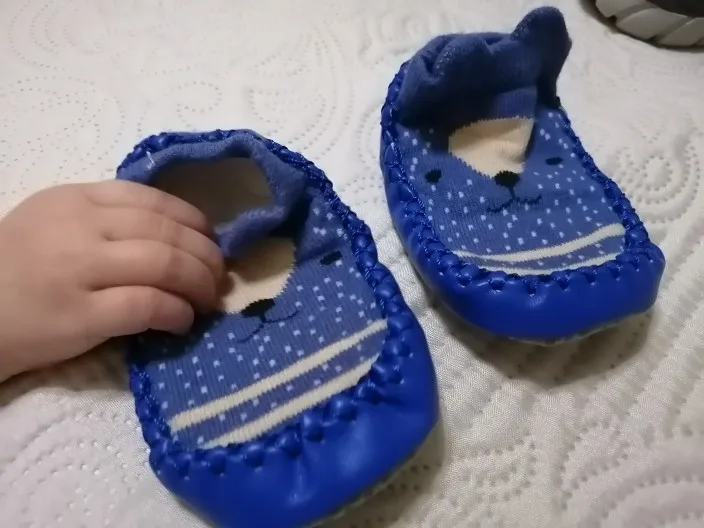 Отличные носочки-тапочки, хорошо подойдут малышу для первых шагов дома. И тепло ножкам, и удобно. Беру уже вторые такие, размер 7-12 свободненько на ножку 11 см, ещё запас есть, но не слетают