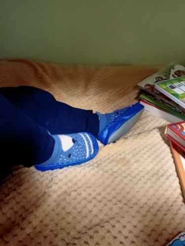 тапочки хорошии.По сути обычный носочек только подошва подшита. Размер 14,на ношку 13 см ,ребенку 1,6 года большеваты,но с ноги не слетают. Мягкие,удобные. Но ребенок не хочет в них ходить, потому что когда ходит по линолиуму тапочки издают скрипящий звук. Может современем привыкнет.
