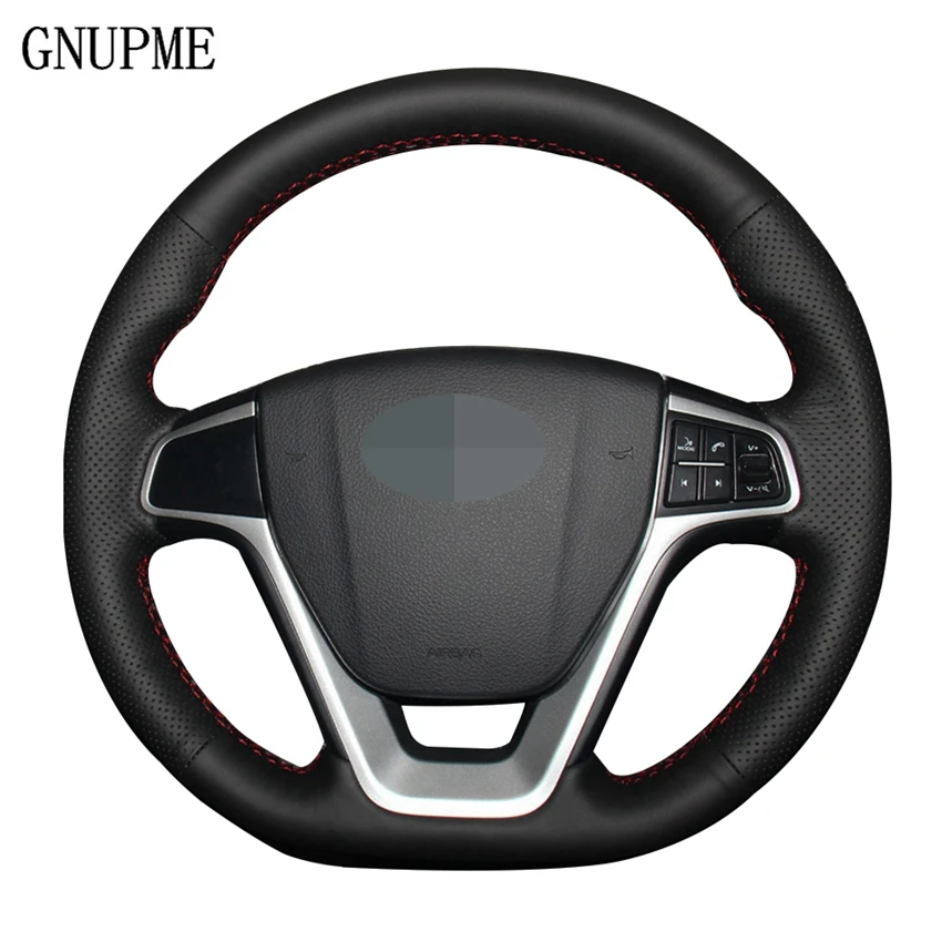 GNUPME искусственной кожи рука сшитый черный чехол рулевого колеса ...