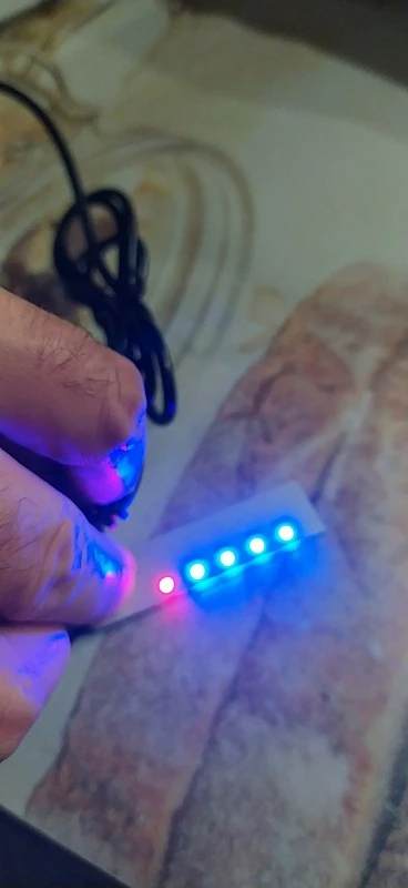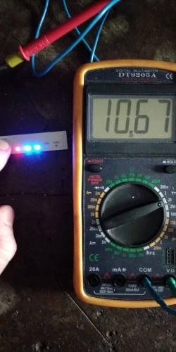 Красиво сделано, толщина 3 мм. Нужна двусторонняя лента для установки на устройство/панель/... Работает так, как ожидалось: при нажатии кнопки Зажмите красный светодиод, один или несколько синих светодиодов (на основе напряжения). Потребляет нулевую мощность, когда не используется (кнопка, скорее всего, в серии с питанием). Очень медленная доставка (3 месяца ....)