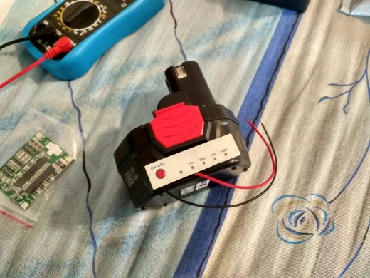 подключил к аккумулятору шуруповерта на 14,4в, работает!!!