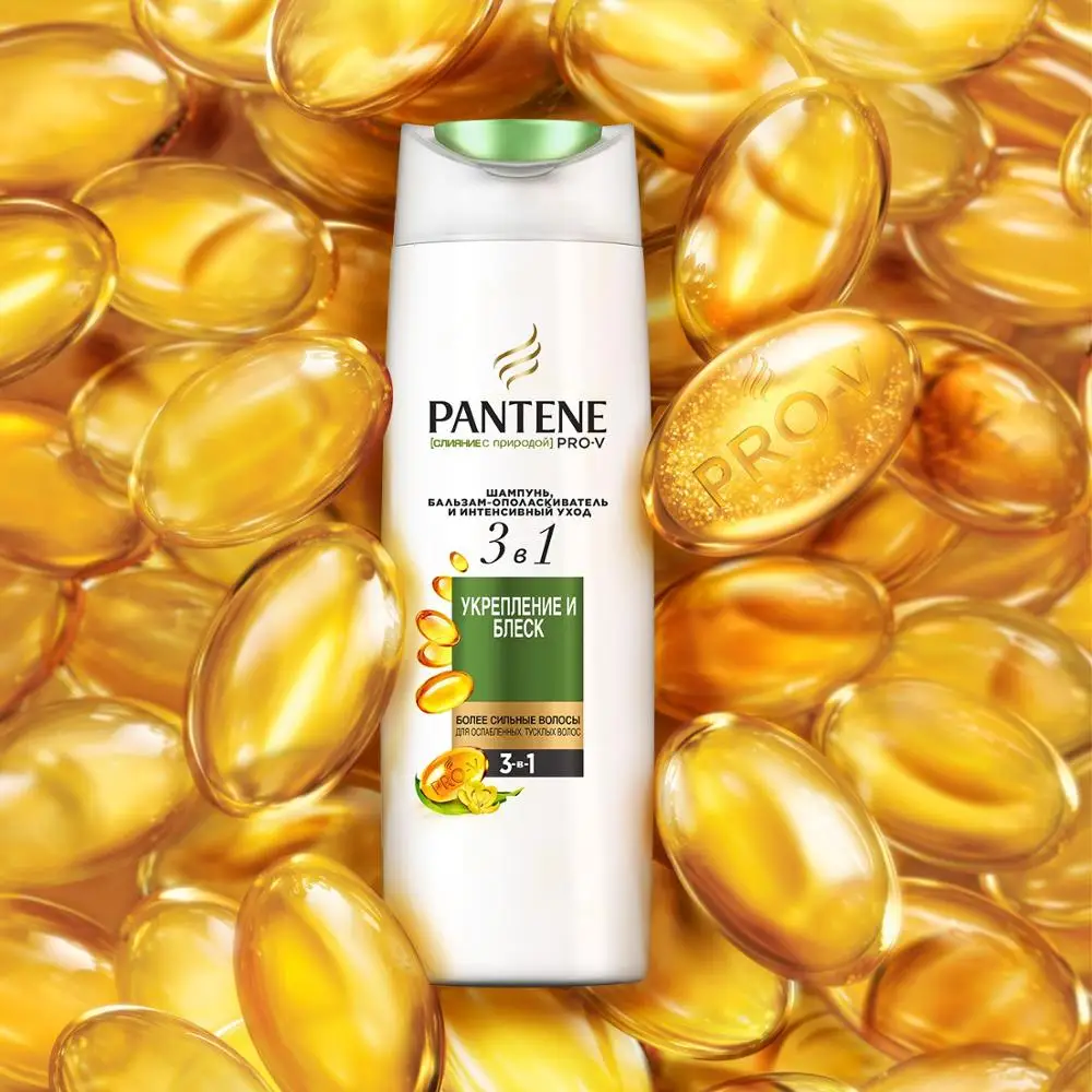 Шампунь + бальзам-ополаскиватель + интенсивный уход Pantene Pro-V «Укрепление и блеск» 3в1 очищает и заряжает волосы питательными веществами Pro-V, придавая здоровый вид и блеск. Формула с веществами Pro-V и натуральным гуаром, традиционно выращиваемым в Азии, придает волосам здоровый вид и блеск. С комплексом гуара.