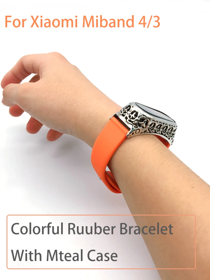 Ремешок AKGLEADER для Xiaomi Mi Band 4, 3, мягкий браслет + металлический чехол для Mi Band 4, Cinturino, Xiaomi Mi band 3, 4, ремешок для часов