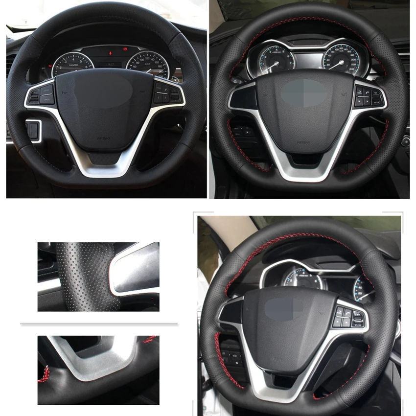 Искусственная кожа для Geely EMGRAND GT 2015, чехол рулевого колеса автомобиля, 2016, черная, ручная работа