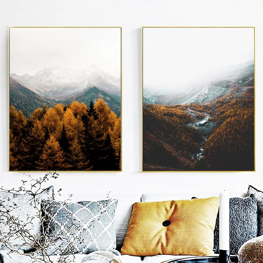 Лес, горы, река, птица, осень, пейзаж, настенная живопись, холст, скандинавские постеры и принты, настенные картины для декора гостиной
