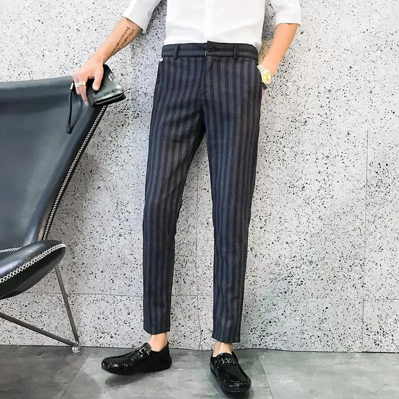 Мужские Классические облегающие брюки в полоску, размеры до 4XL