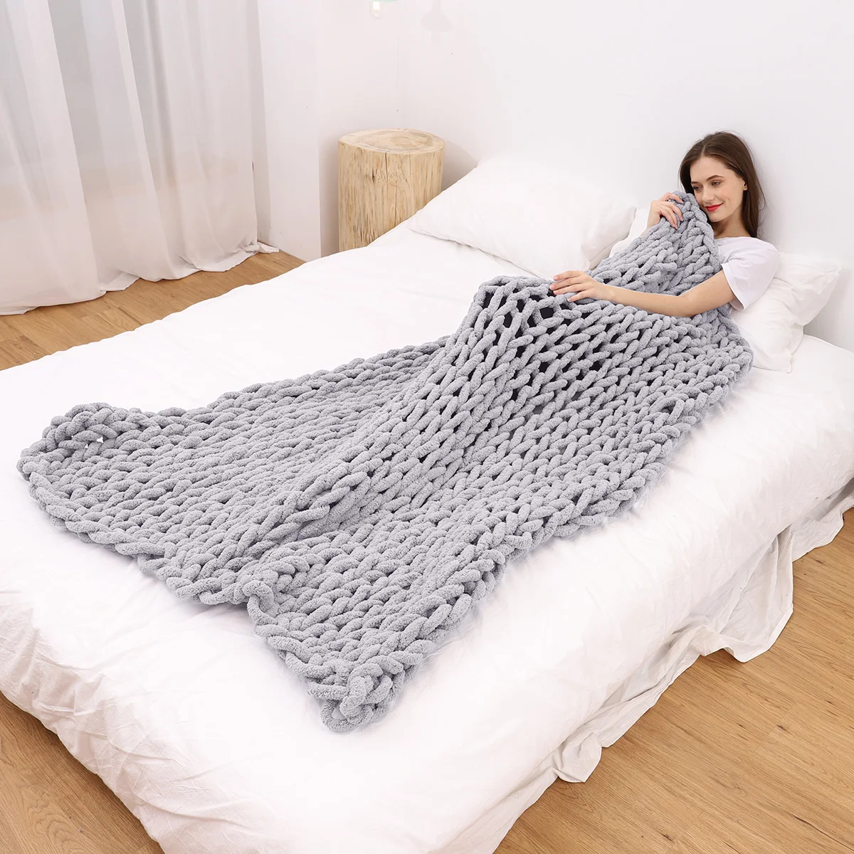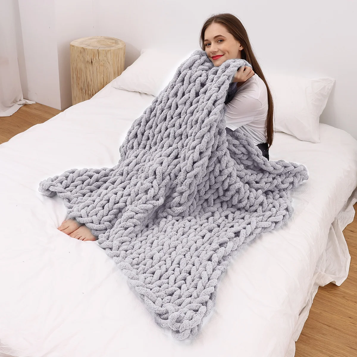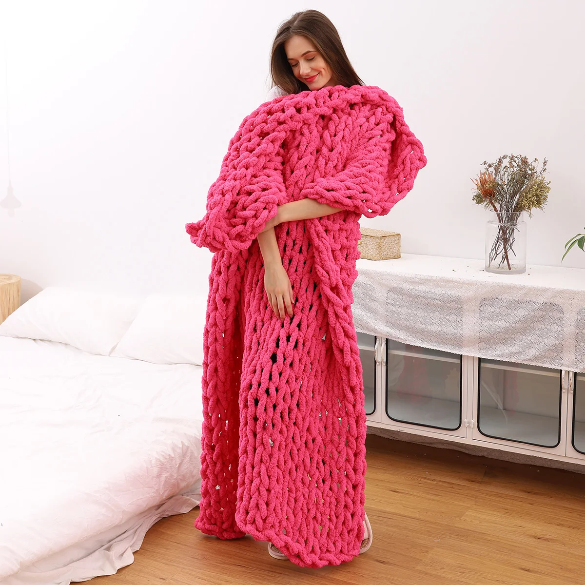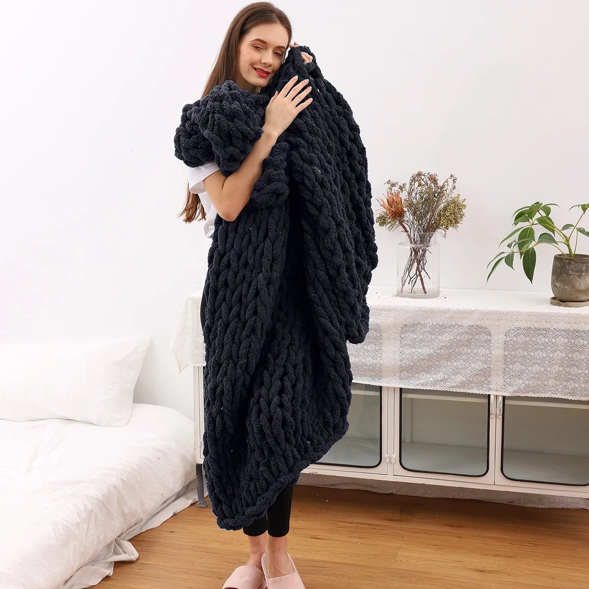 Chenille ChunkyKnitted одеяло, коврик из плотной мягкой ткани ручного плетения, Скандинавское декоративное одеяло для фотосъемки, покрывало из пряжи, Подарочный диван, матрас для стула, домашний декор