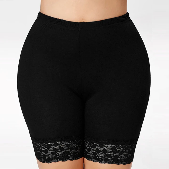 Размера плюс женские шорты с кружевной отделкой, однотонные шорты с...