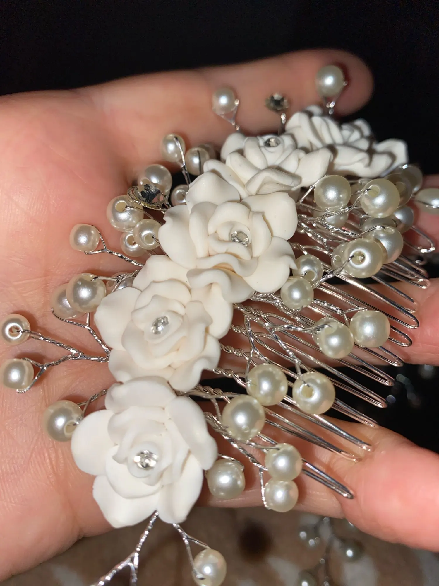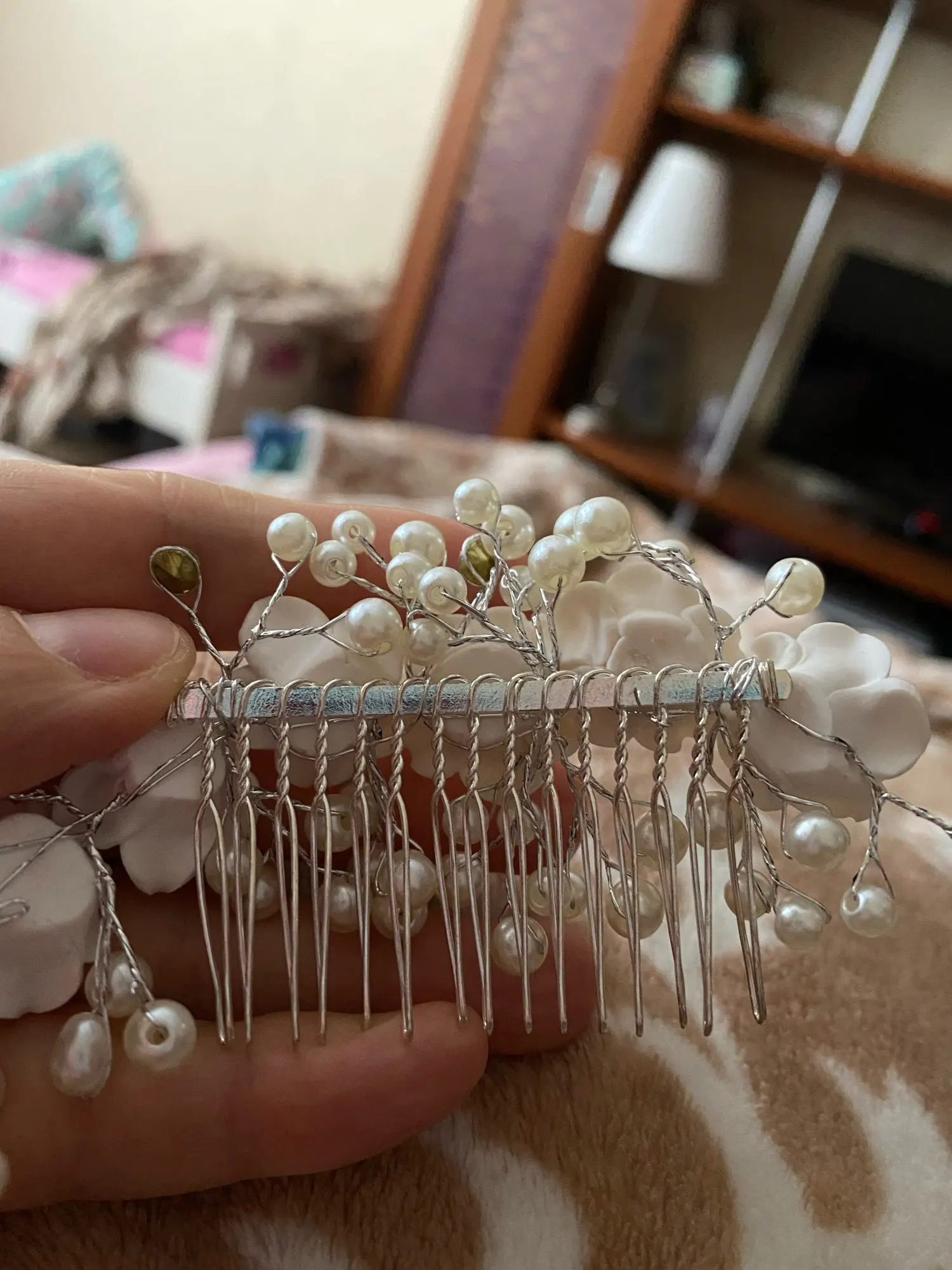 Женский обруч для волос с жемчужными цветами, свадебный аксессуар на голову с тиарами и заколками