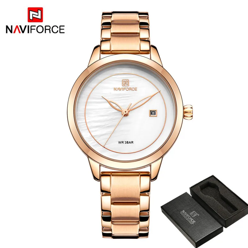 Часы NAVIFORCE женские, розовое золото, браслет из нержавеющей стали, классические, 5008