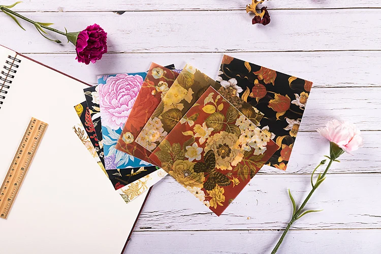 8 цветов, Винтажный Золотой осенний цветочный бархатный бумажный узор для скрапбукинга, счастливый планировщик, создание карт, проект нежелательного журнала