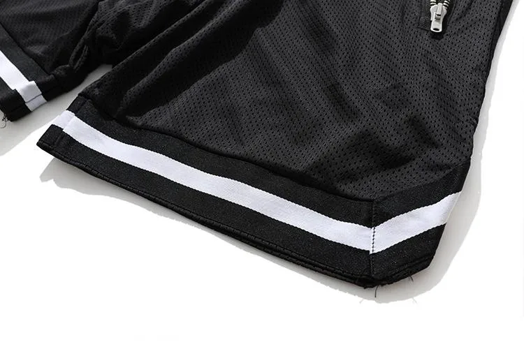 Мужские спортивные шорты, полосатые, с карманами на молнии, на шнурке