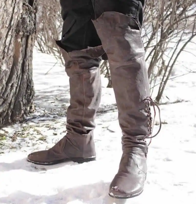 Мужские высокие сапоги-трубы в средневековом ретро-стиле из искусст...