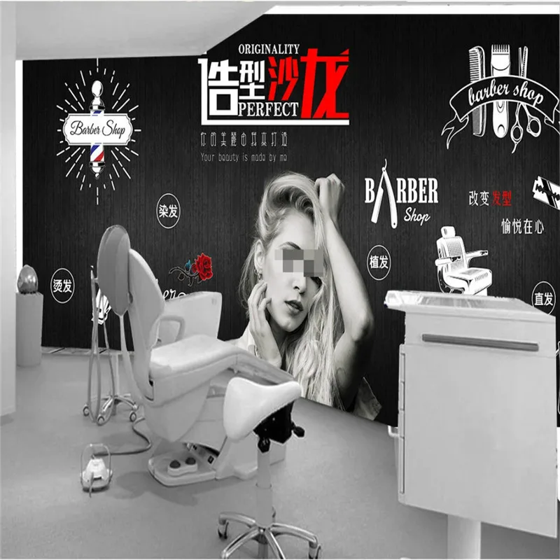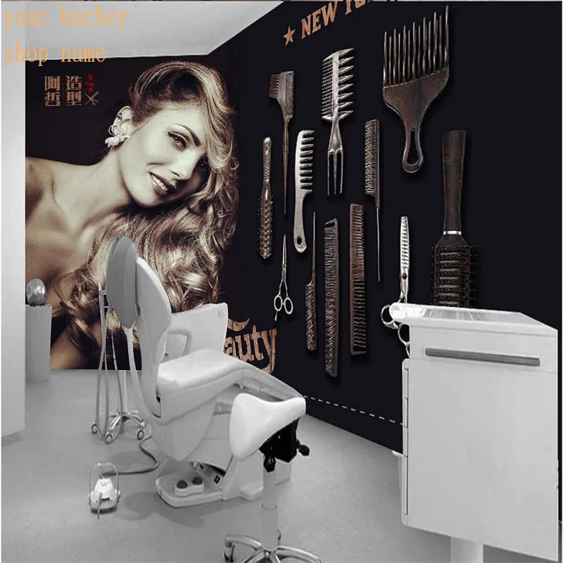 Пользовательские размеры текстовый логотип Парикмахерская Салон красоты настенная бумага 3D Парикмахерская промышленный Декор настенная бумага Papel де Parede 3D