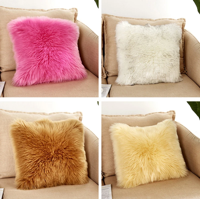 17 цветов, пушистые подушки из искусственного меха для дивана, толстая мягкая теплая наволочка, однотонный квадратный длинный плюшевый чехол для подушки