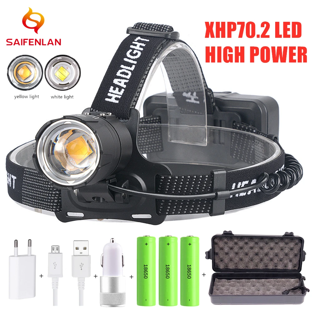 Налобный фонарь XHP70.2, светодиодный, с аккумулятором 3*18650
