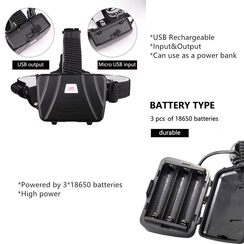 * Ультра-яркие лампы XHP70.2, эквивалентные яркости 4 светодиодных шариков T6. Расстояние освещения может достигать около 500 метров, так что вы можете увидеть все в уличной ночи. * Объектив с большой диафрагмой для более широкого спектра освещения. * Поддерживает выход аккумулятора, вы можете зарядить свой телефон. * Вы можете выбрать желтый свет (3000k) или белый свет (6000k) * Для рыбалки, кемпинга, бега, охоты, верховой езды, чтения...