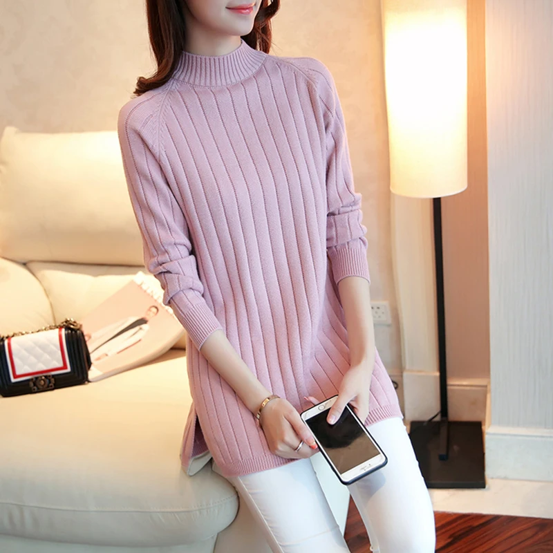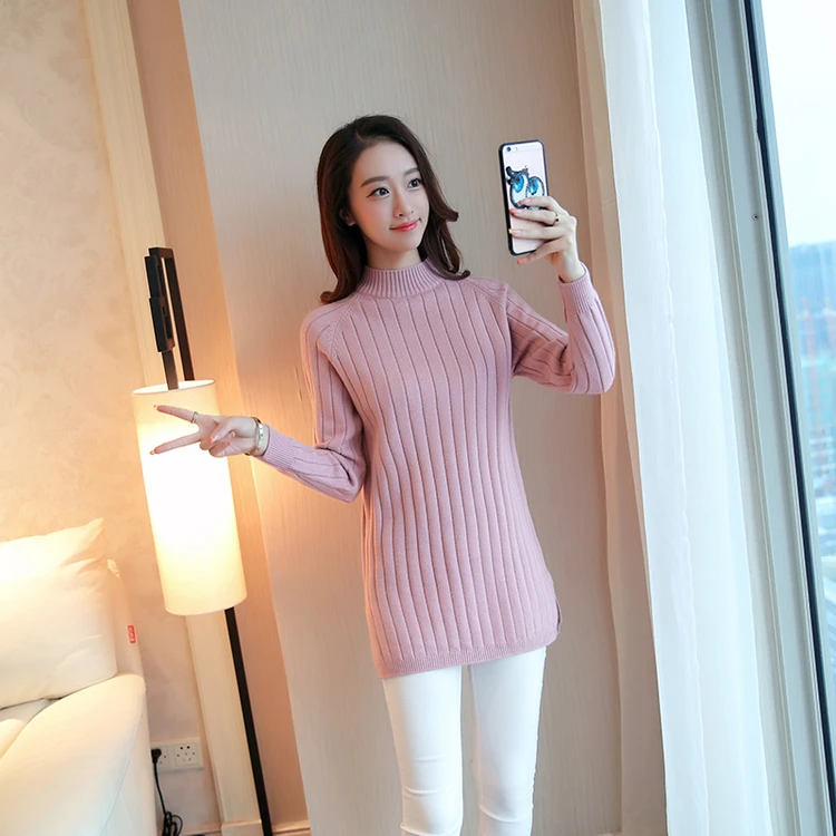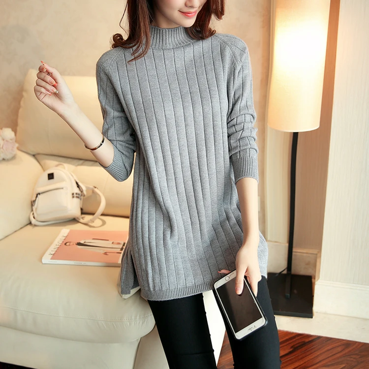 Женское длинное трикотажное платье-свитер с круглым вырезом