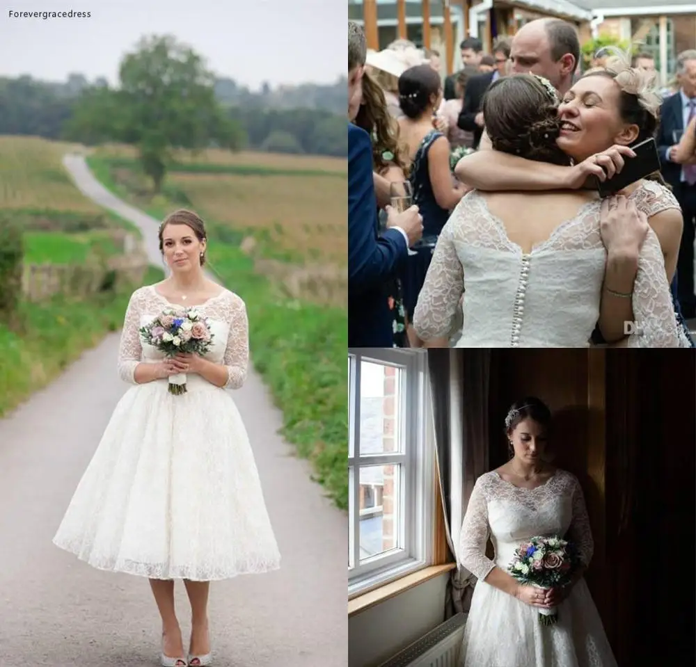 2019 кружевное свадебное платье, благородное Короткое свадебное платье до середины икры, платье невесты для загородного сада, индивидуальный пошив, большие размеры