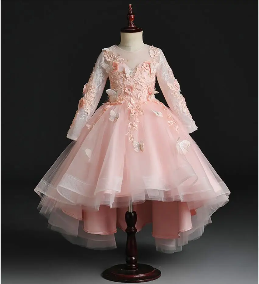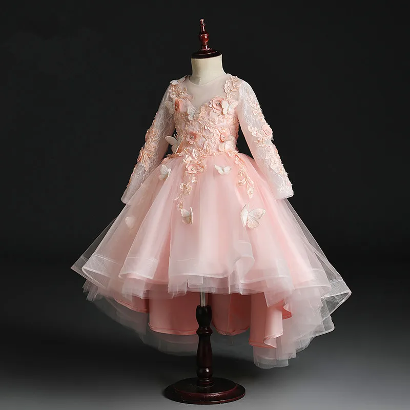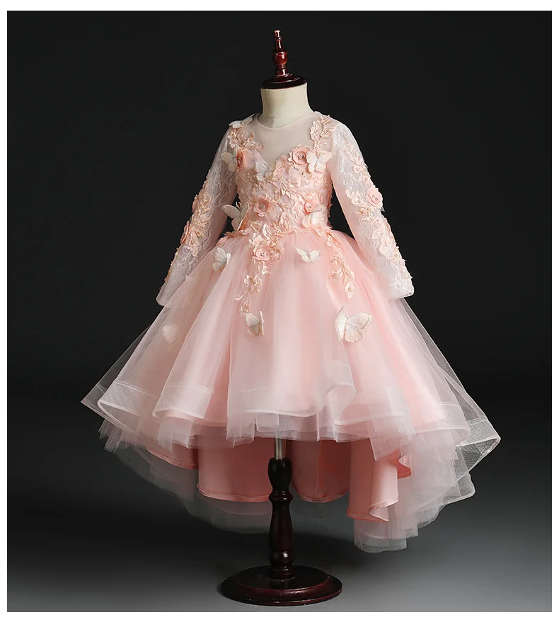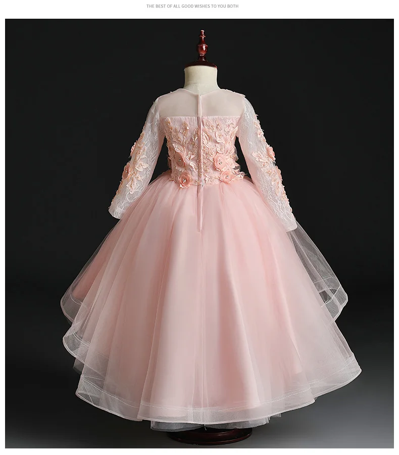 Детское кружевное платье с цветочной аппликацией для девочек, вечер...