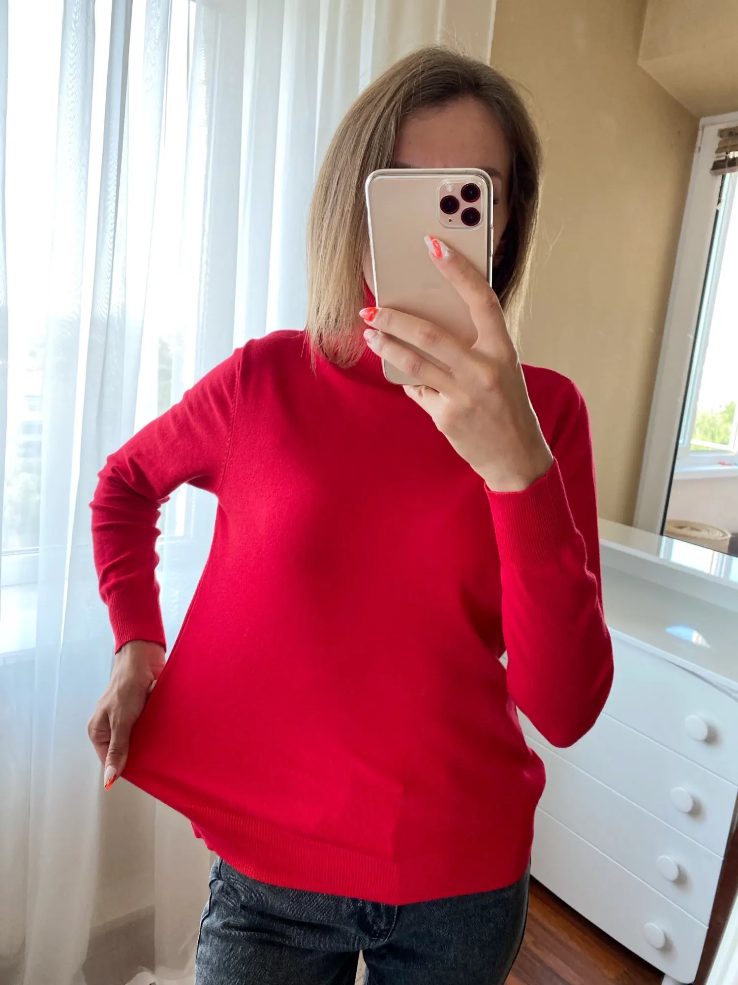 Вот он идеальный красный оттенок который искала. Шикарная водолазка. На параметры 83/65 заказала размер М, села отлично. Хорошая длина и рукав на рост 171. Высокая горловина, не тугая. Материал невероятно мягкий и приятный к телу. Качество отличное. Видеообзор в инст: candy_sweet_blog