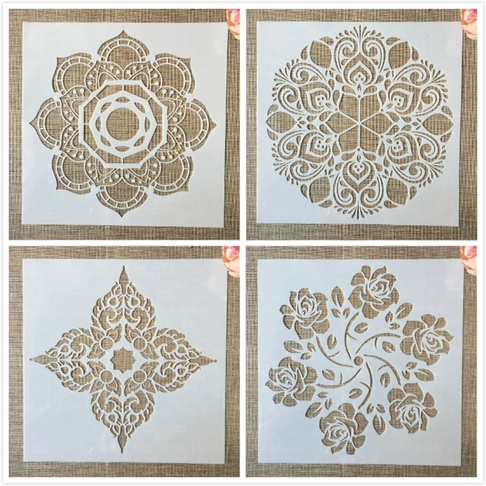 4 шт.компл. 30*30 см большой цветок, 12 дюймов, мандалы DIY, многослойные трафареты, раскраска для скрапбукинга тиснильный альбом, декоративный шаблон
