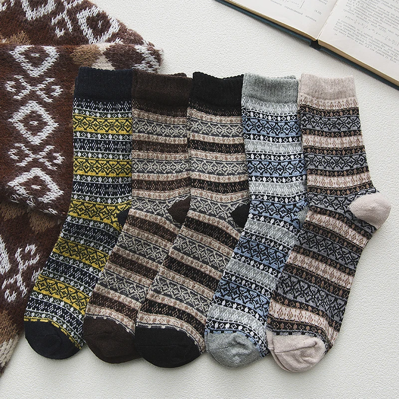 5 партЛот, новые мужские носки Witner, женские зимние шерстяные носки, винтажные рождественские носки, цветные носки, подарок, свободный размер