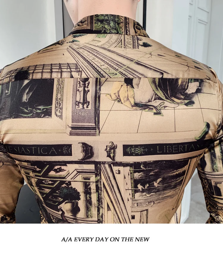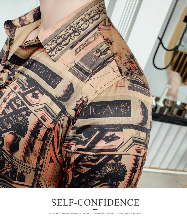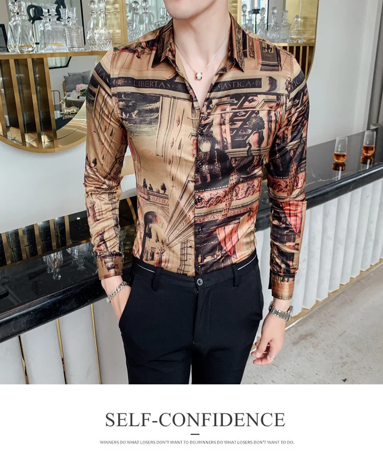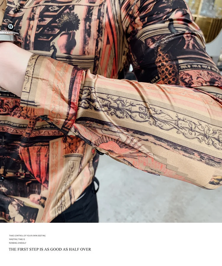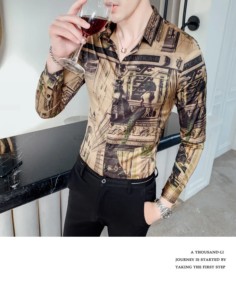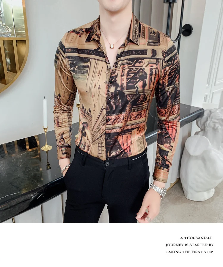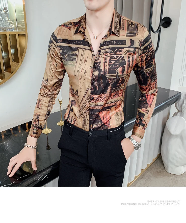 camisa slim fitflower shirt men