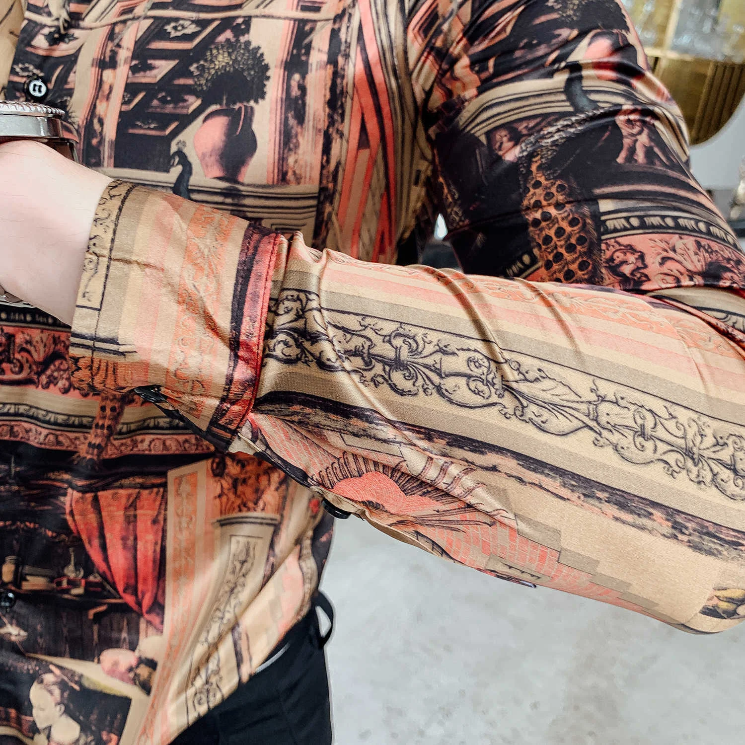 Рубашка мужская черно-Золотая с длинным рукавом и принтом в стиле барокко, 4xl