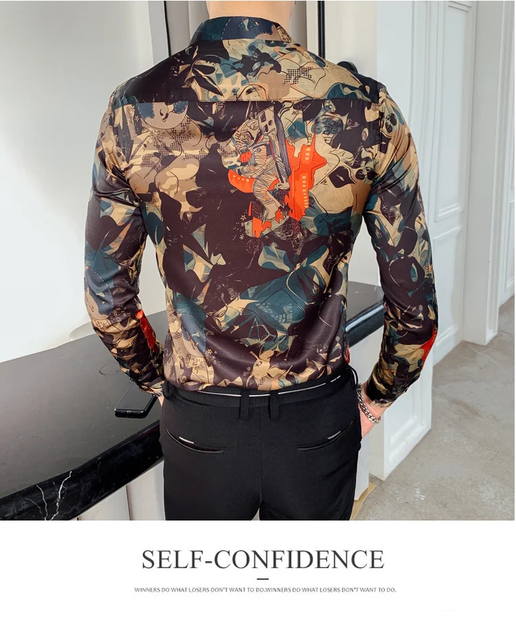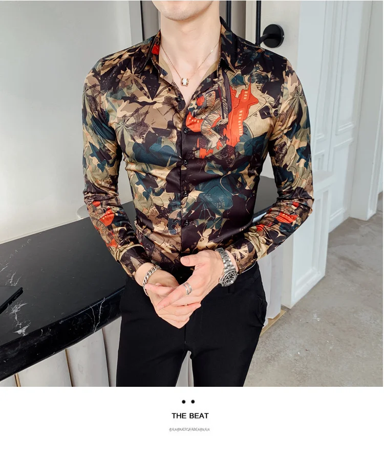 camisa slim fitflower shirt men