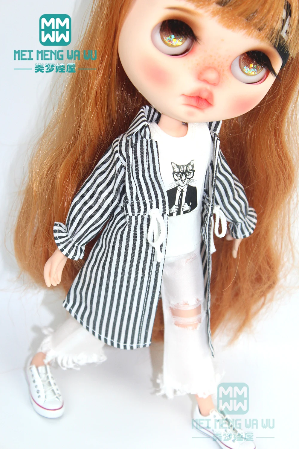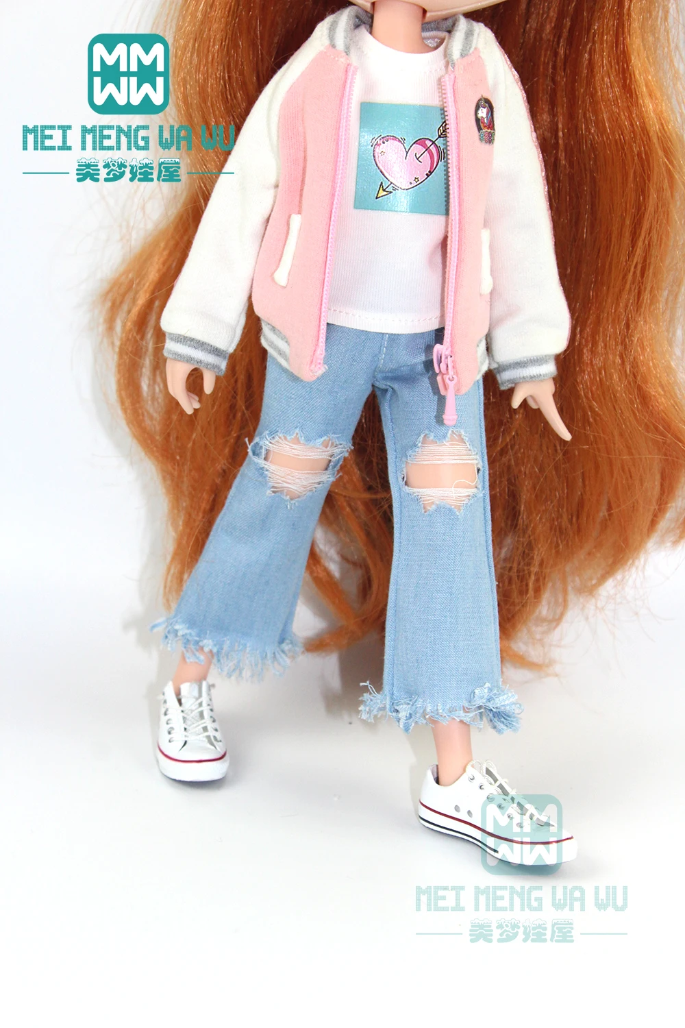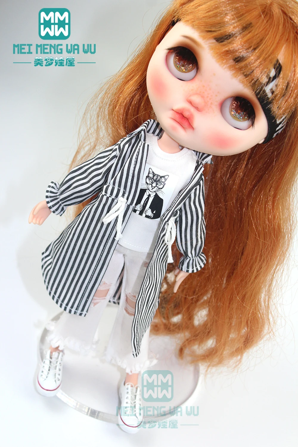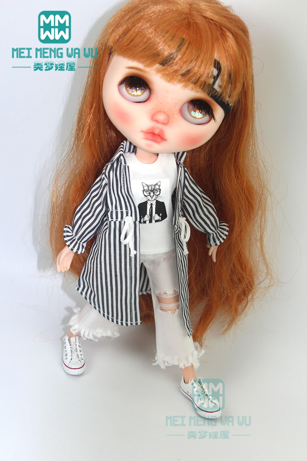 Одежда для кукол блайз, рубашка, рваные джинсы, повязка на голову, носки для кукол блайз азон OB22 OB24, аксессуары для кукол блайз, 28-30 см, 1 шт.