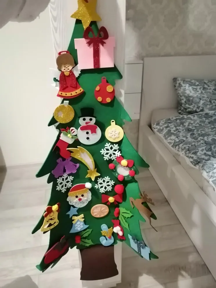 Супер развлечение для детей. Приобрели за 670₽ Доставка быстрая. Качество отличное. Плоская елочка из фетра украсила наш загородный дом.