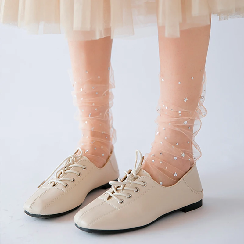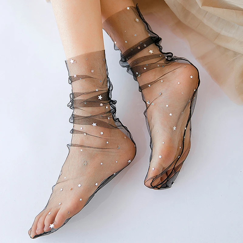 Носки женские, прозрачные, из шифона, со звездами и Луной