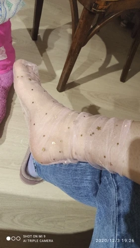 Хорошие носочки. Стоит попробовать для разнообразия. На стопу 25,5 см - конечно налезли, но на девочек с ножками более скромного размера - будет лучше, свободнее. Ткань носочков тянется умеренно. Шли дней 20 до Москвы. Разницы в качестве или чём-то ещё между этой парой и другой парой, которая в этом же магазине почти в 2 раза дешевле - не нашла. Поэтому прикладываю фото разных комплектов:)