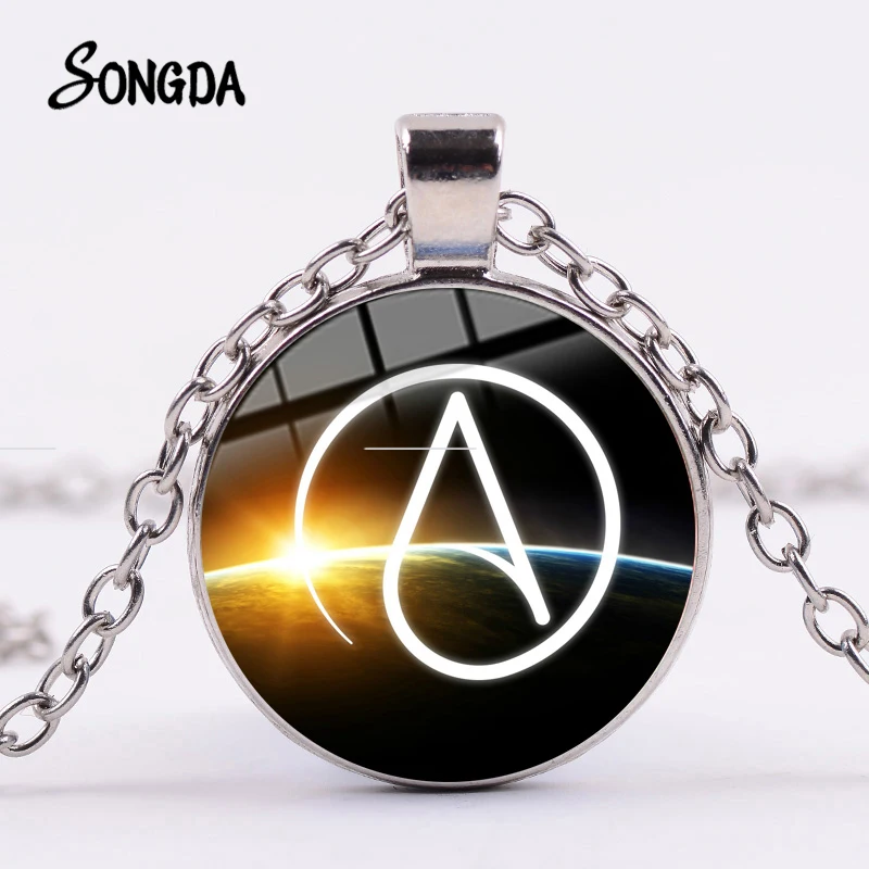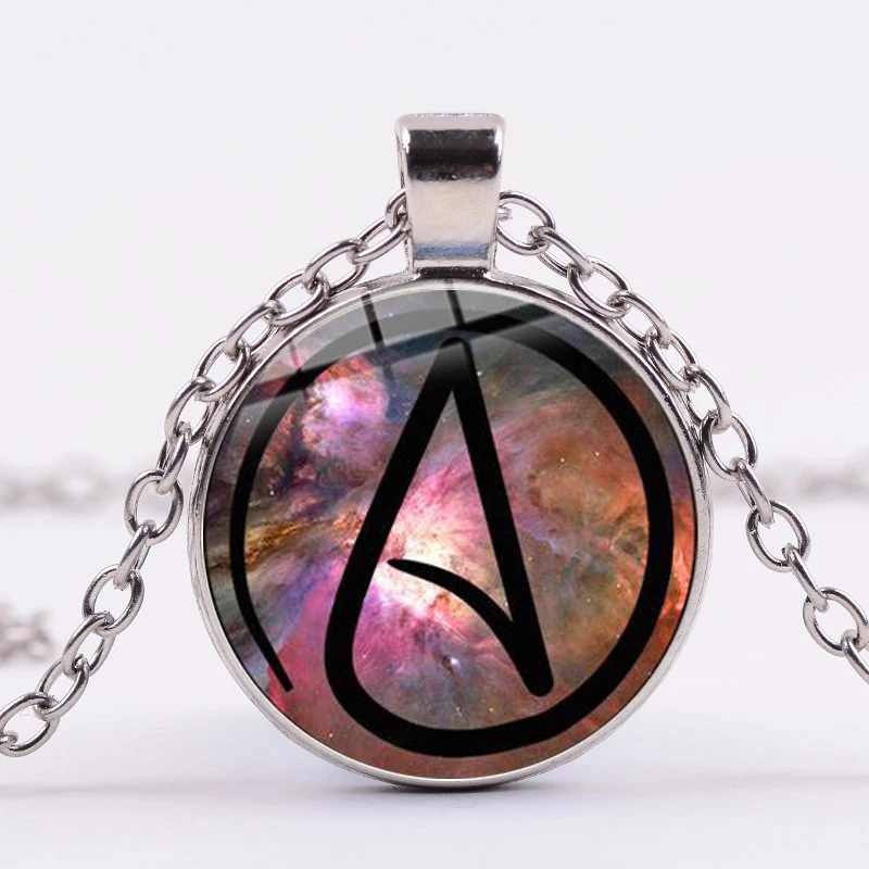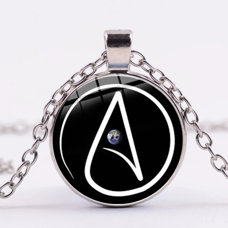 Лидер продаж, ожерелье с символом атеизма, посеребренный стеклянный кабошон, подвеска в подарок, цепочка для свитера, ювелирное изделие без религии