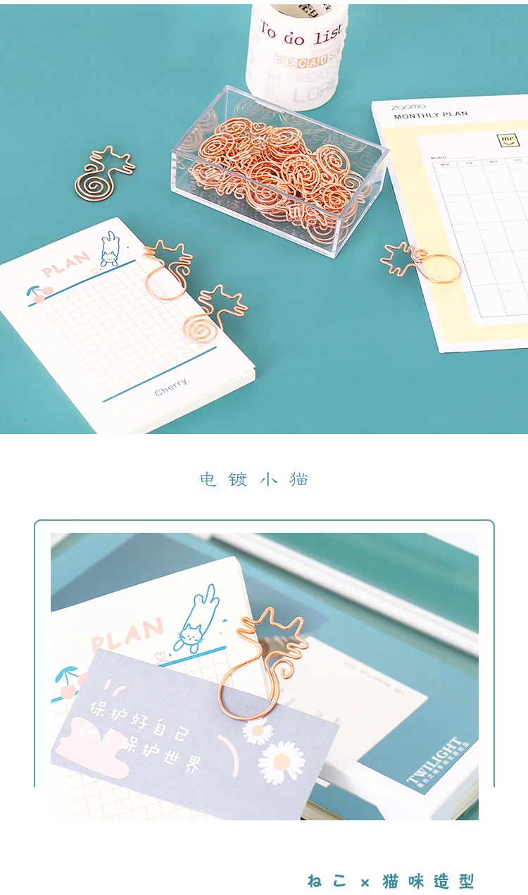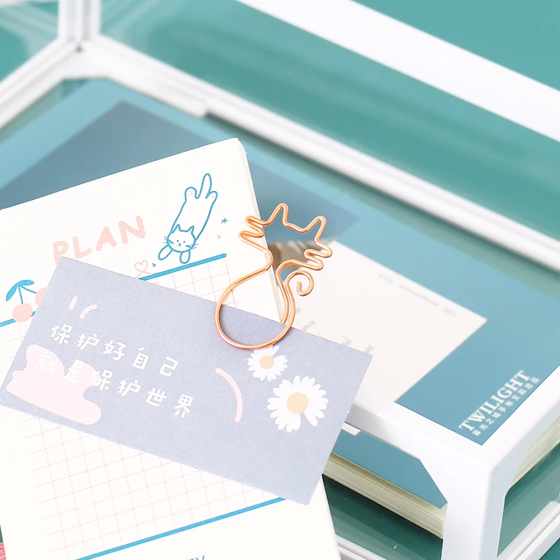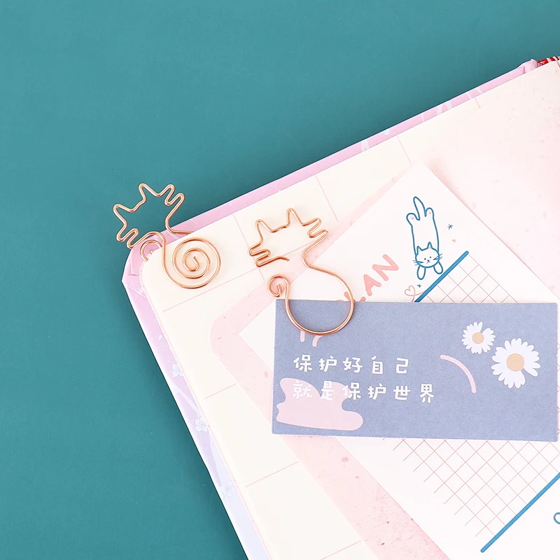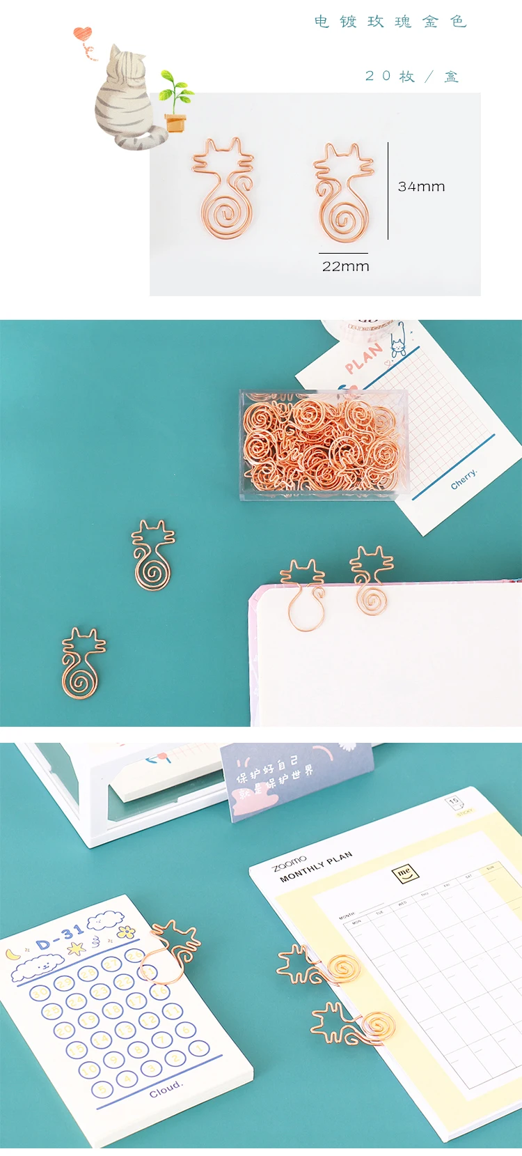 Зажим для бумаги в виде кошки, розовое золото, 20 шт.кор.