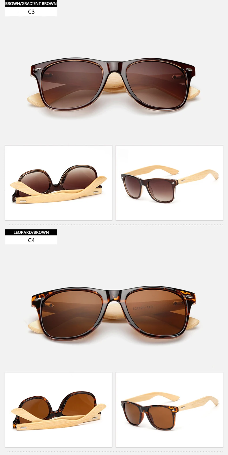 Солнцезащитные очки с бамбуковыми дужками UV400 для мужчин и женщин