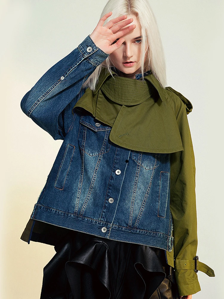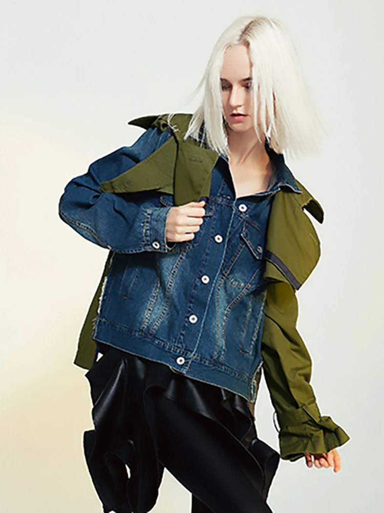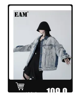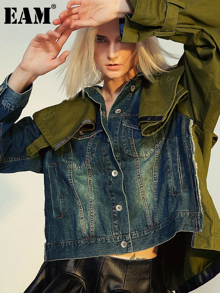 EAM Свободная приталенная короткая джинсовая куртка, новая женская куртка с отворотом и длинным рукавом, модная весенне-осенняя 2022 1B093